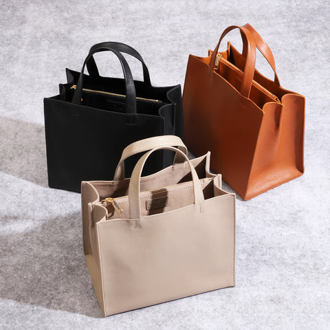 通勤やお出かけにぴったりのミニサイズのトートバッグ。徹底的にシンプルにこだわったデザイン。