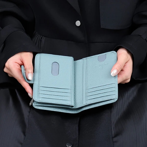 革の表面にシボ(細かな凹凸模様)を施したもの。シボには自然にできたものと型押しで作られたものがあり、キズが目立ちにくく、高級感があるのが魅力。滑りにくく手触りが良いので、財布やバッグなどのアイテムによく用いられます。